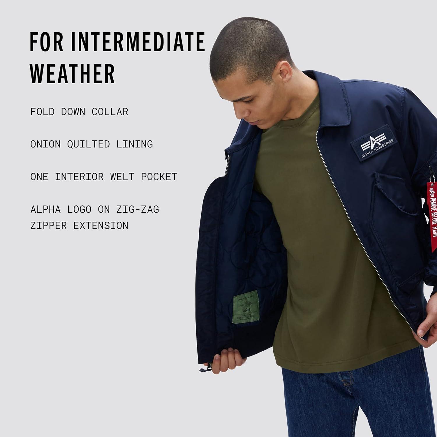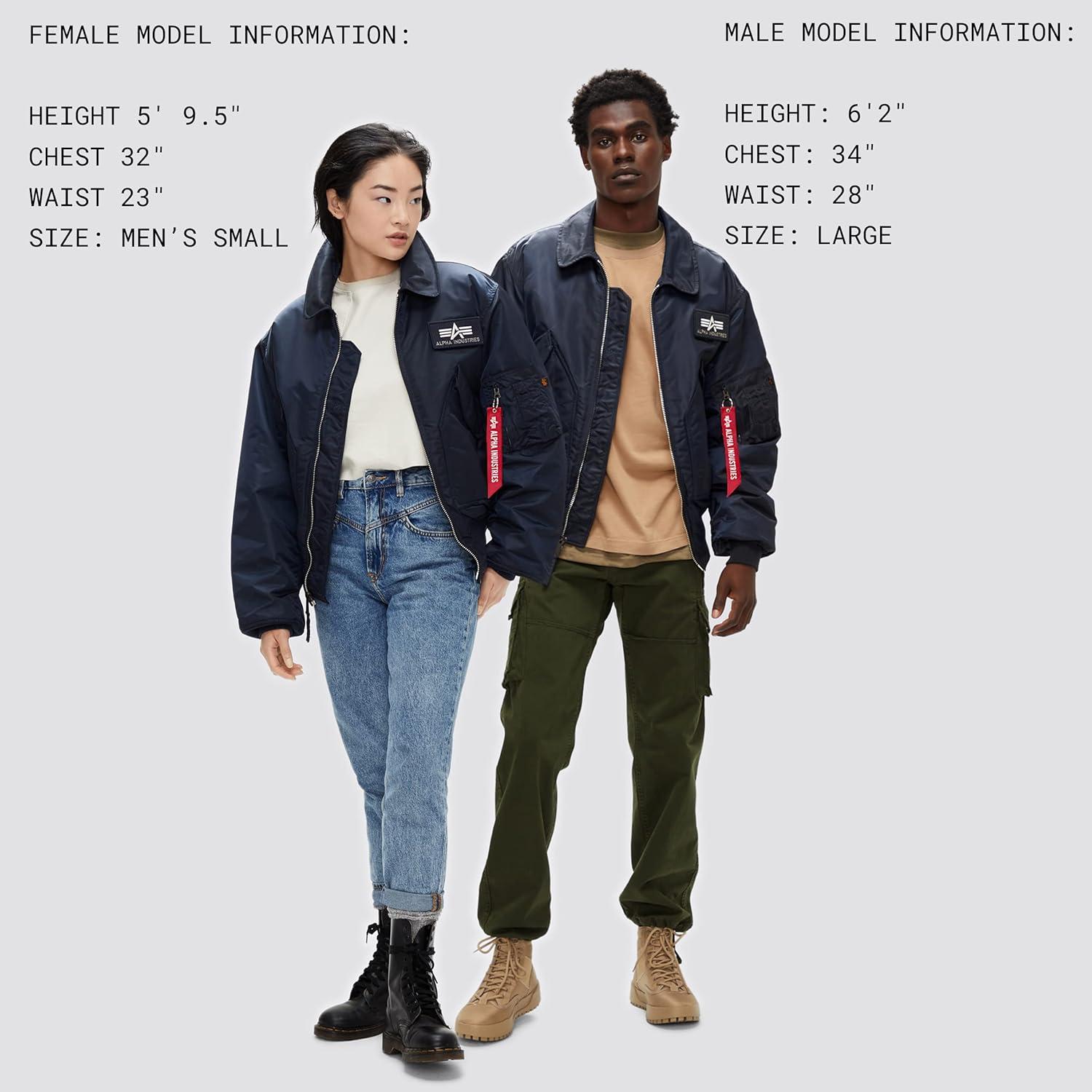 Our CWU 45/p flight jacket is ideal for those seeking durable construction, warmth and authenticity. The water repellent nylon shell guarantees maximum dryness and comfort. The CWU 45/P jacket features a water-repellent nylon outer shell, paired with two layered quilted nylon/polyester interlinings. The pilot jacket has knit cuffs, waistband, and front zipper closure with storm flap ensure that you'll stay warm and dry. The CWU 45/P flight jacket silhouette is still issued to USAF and Navy pilots today. This men’s jacket is our standard fit so we recommend you order the size you typically wear. Alpha Industries is a 55-year-old heritage military company that originally supplied the United States Armed Forces with durable outerwear. Now you can own an authentic flight jacket made to the same high quality standards demanded by the US military. Each flight jacket is uniquely designed and inspired by an iconic military jacket in Alpha Industries history. We invite you to be a part of this history today!.