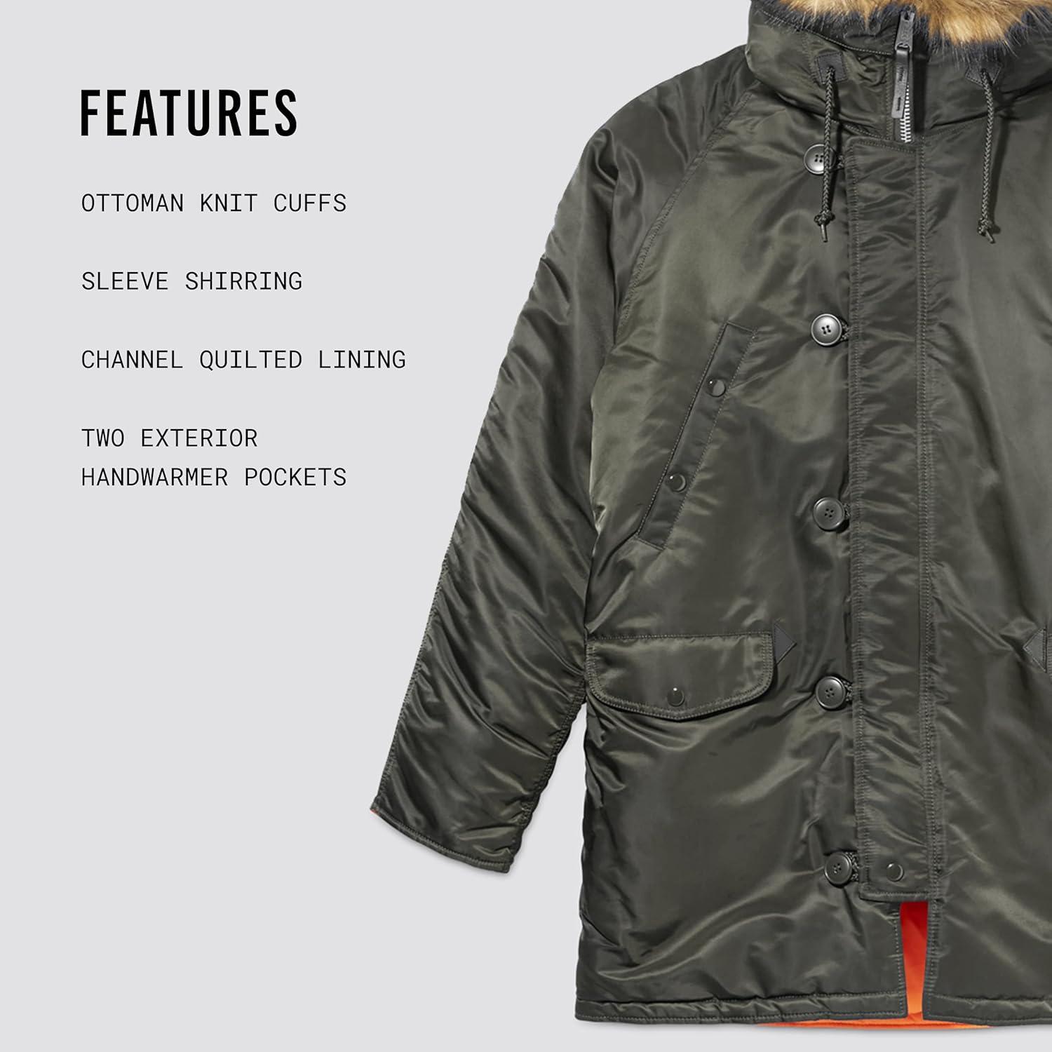 Alpha Industries N-3B Oxford Parka Military Style Winter Jacket Water-Resistant Snorkel Hood Coat Heavyweight Outerwear(Og-107 Green)