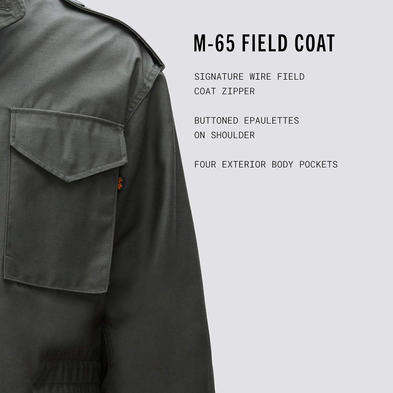 Alpha Industries mens Tall Size M-65 Thigh Length Zip Field Coat With Pockets(Black)