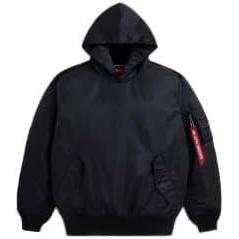 Alpha Industries Men’s Pull-Over Hooded MA-1 Flight Bomber Jacket 100% Nylon Water Resistant Utility Pockets Fall Outerwear(Black)