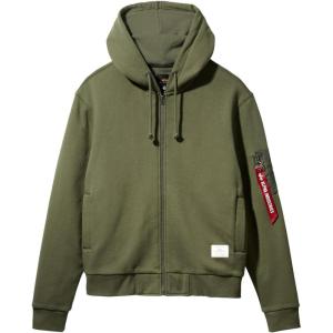 Alpha Industries Utility Pocket Full Zip Up Hoodie Drawcord Adjustable Hood and Utility Sleeve Pocket Alpha Red Ribbon(Og-107 Green)