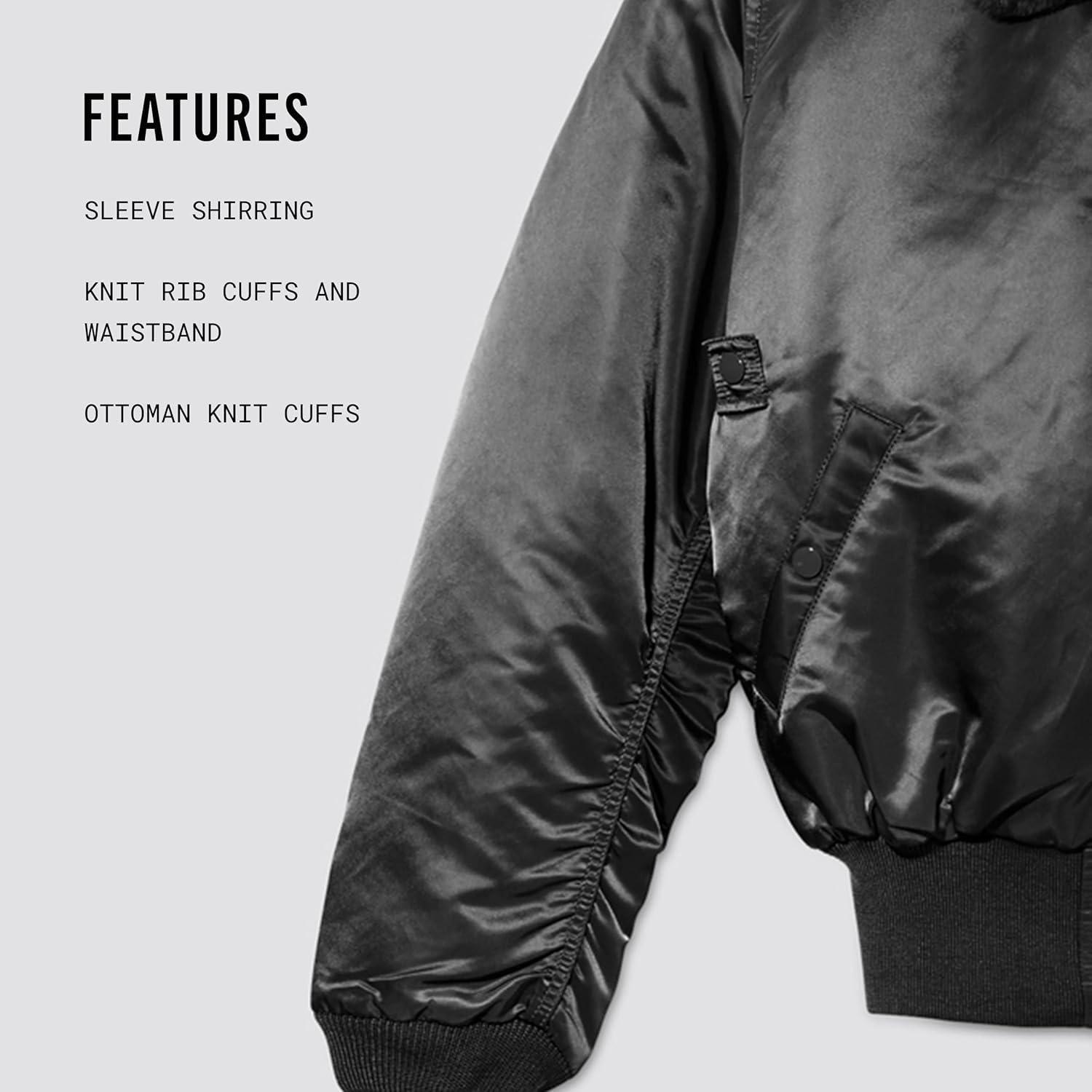 Alpha Industries MA-1 Oxford Flight Jacket Lightweight Oxford Nylon Bomber Utility Sleeve Pocket Ribbed Knit Cuffs Hem(Black)